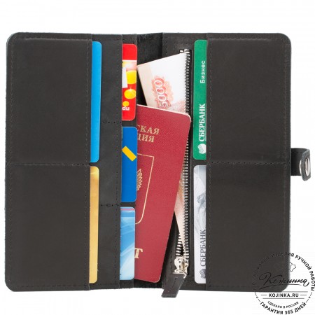 Дизайн бумажника и удобство в обращении с ним делают эту модель весьма приятным приобретением для любого автовладельца. Задняя часть бумажника- это отделение для паспорта.