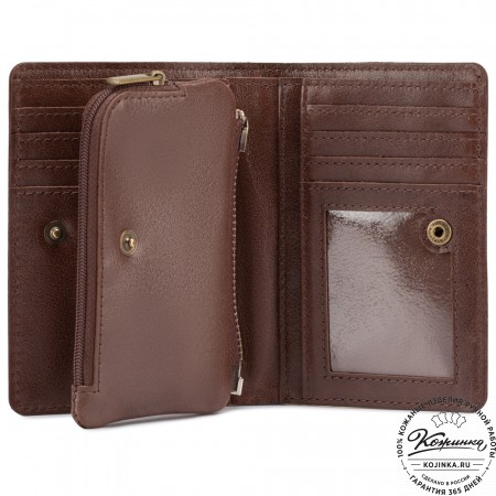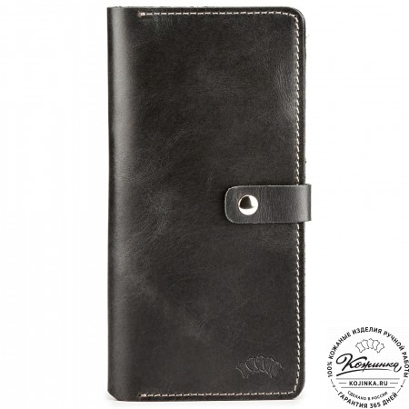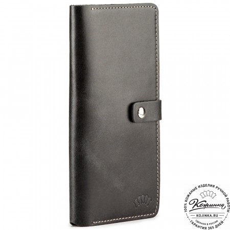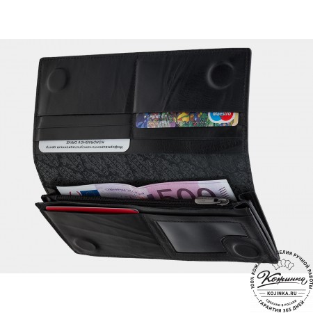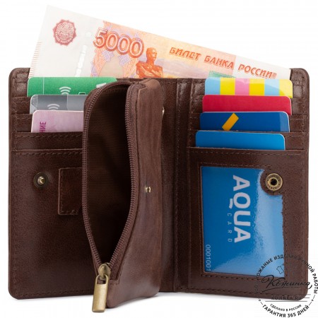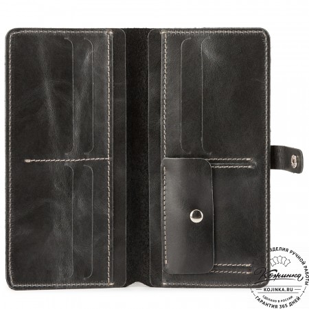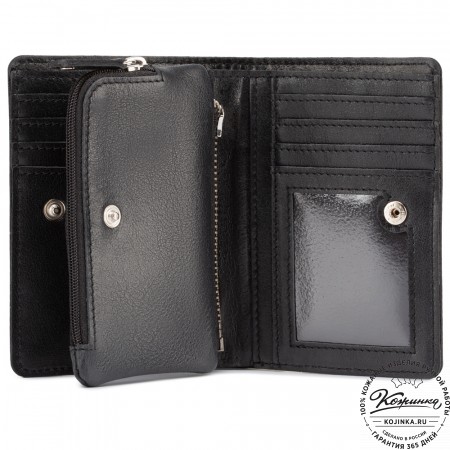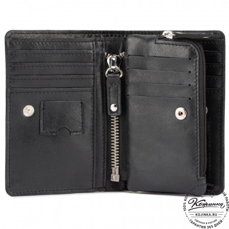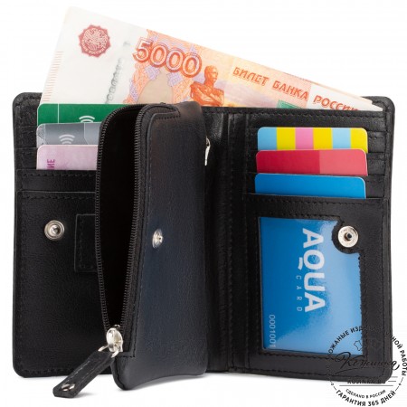 Кожаное портмоне Рим (черное) - отличный вариант небольшого бумажника с отделениями для карт и для мелочи.