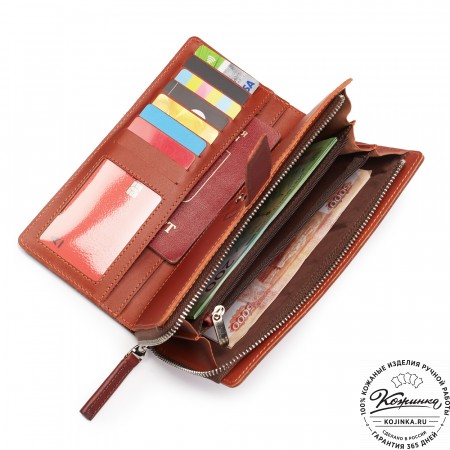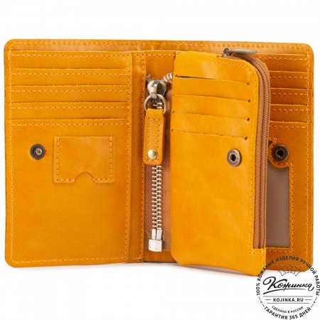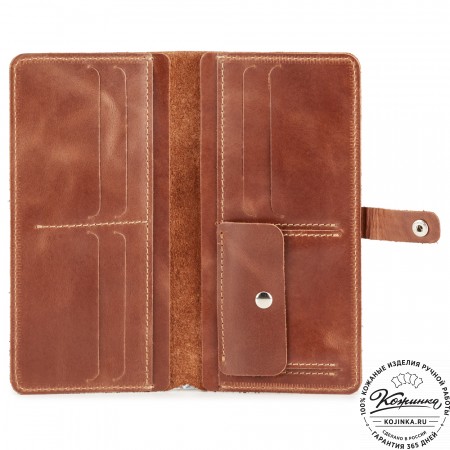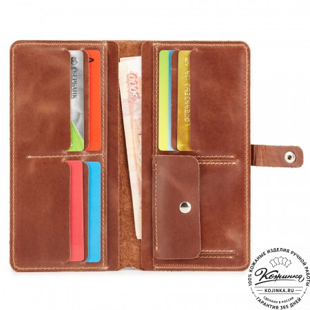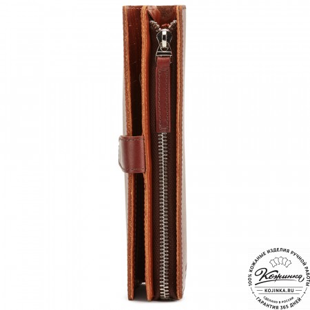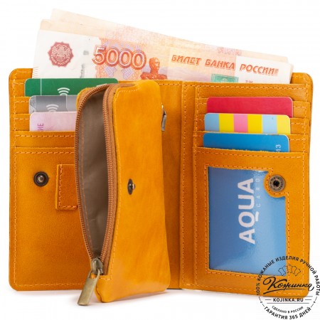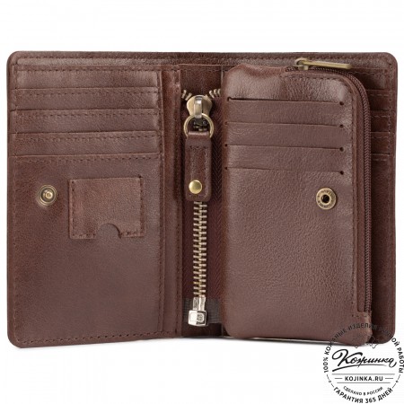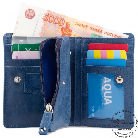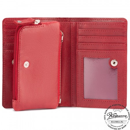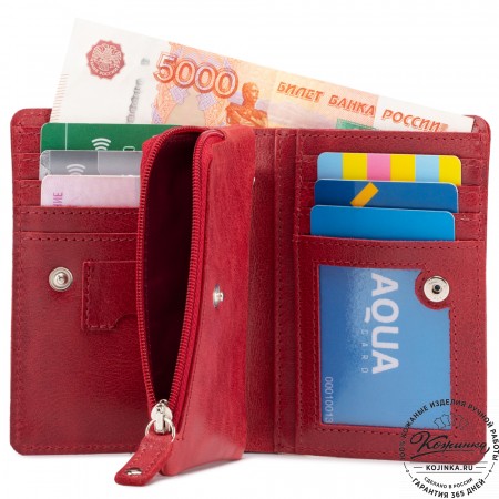 Портмоне Рим, как и вся коллекция, выполнено в мягкой, но достаточно толстой коже высокого качества. Фиксируется в закрытом состоянии на кнопку.