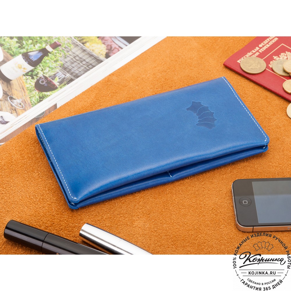 Кожаное портмоне Санкт-Петербург (синее) - полноценное вместительное портмоне высокого качества исполнения! Эта модель портмоне удобно закрывается на магнитах.