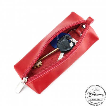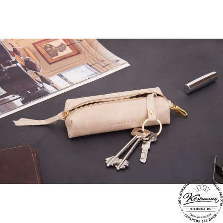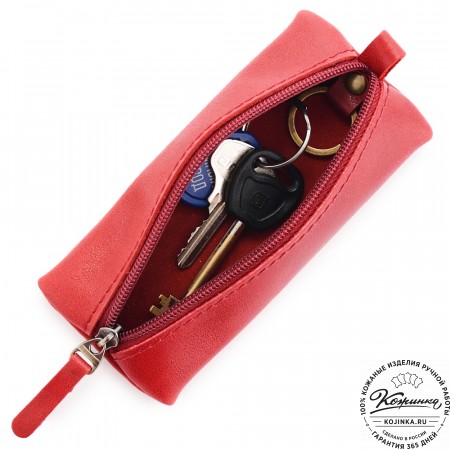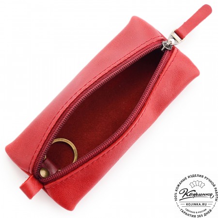 Внутри кольцо для ключей на цепочке, что обеспечивает дополнительное удобство использования. Закрывается ключница на молнию, снаружи есть небольшой карабин.