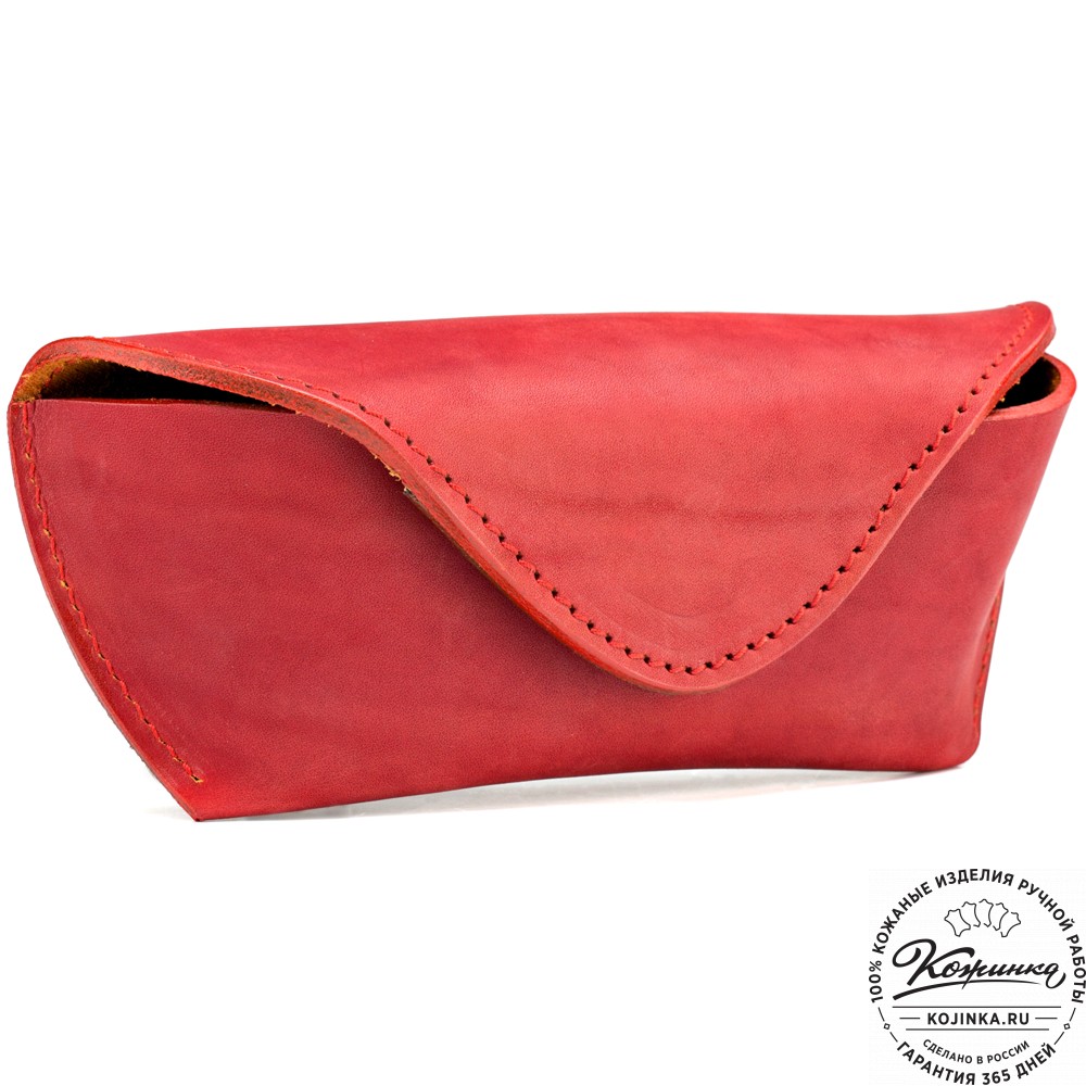 Кожаный футляр для очков из жёсткой кожи (красный) – стильный аксессуар для истинных ценителей натуральной кожи.