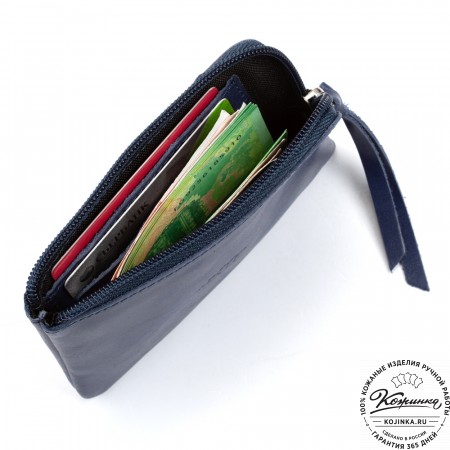 Портмоне, как и вся коллекция, выполнено в мягкой, но достаточно толстой коже высокого качества. Фиксируется в закрытом состоянии на хлястик с кнопкой.