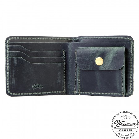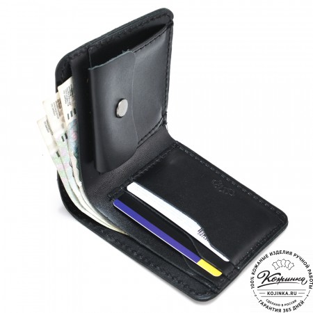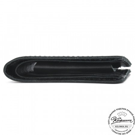 Кожаное портмоне "Германия" (чёрное) - отличный вариант небольшого бумажника с отделениями для карт, купюр и мелочи.
