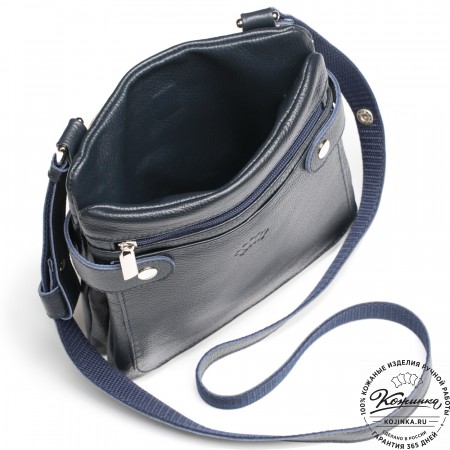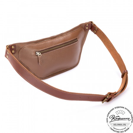 Лямка из кожи, усилена стропой, регулируется по длине.