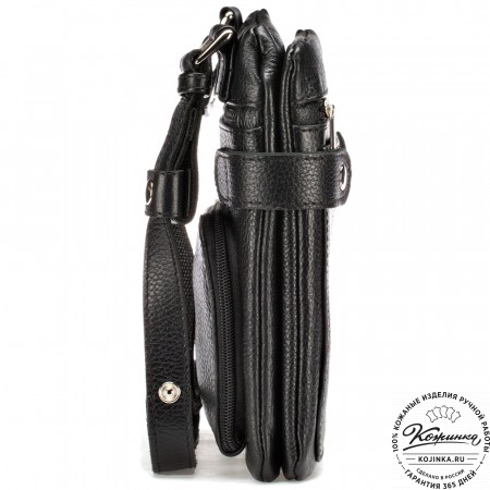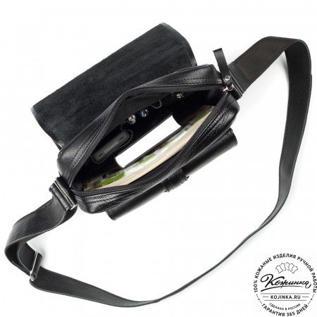 Плечевой ремень из кожи и тканого полиэстера удобно крепится по диагонали. Ремень можно отрегулировать по длине.