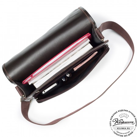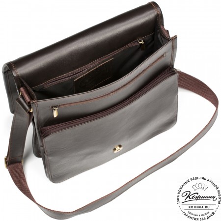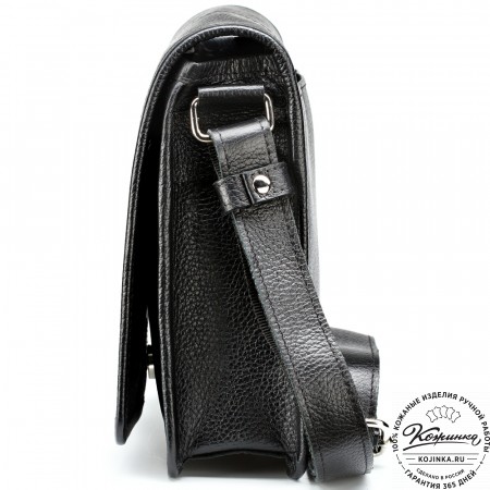 Плечевой ремень выполнен из кожи. Ремень съемный, крепится на карабины, регулируется по длине ременной пряжкой.