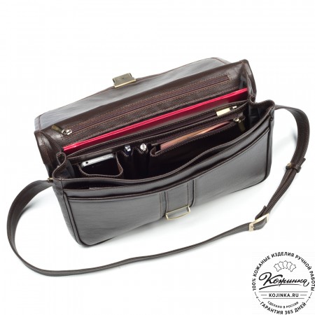 Кожаный портфель-кофр "Адъютант" представляет собой одно большое основное отделение из 100% толстой кожи с большим накладным карманом спереди.