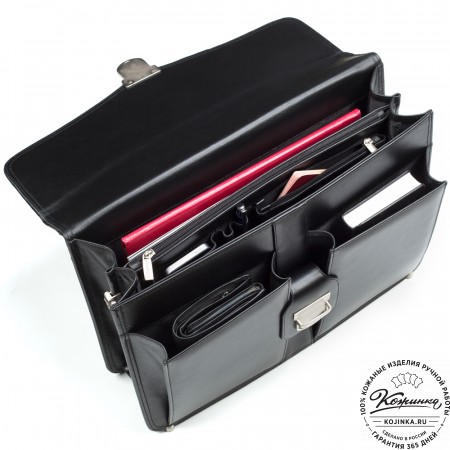 На модели представлен портфель-кофр "Адъютант" чёрного цвета.