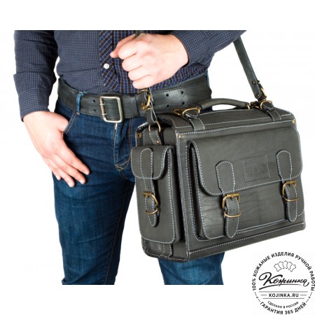 Портфель изготовлено из жесткой натуральной кожи и прочной фурнитуры.