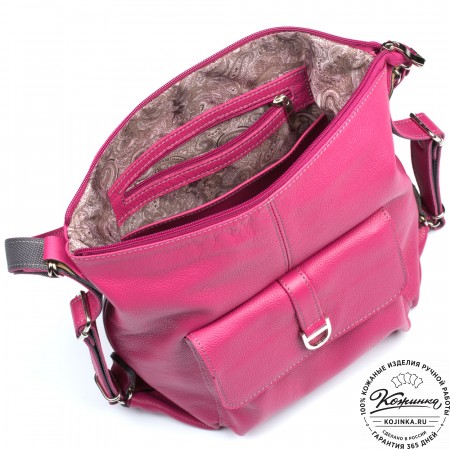 У рюкзака большая удобная ручка и регулируемые по длине кожаные лямки.