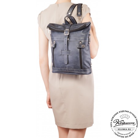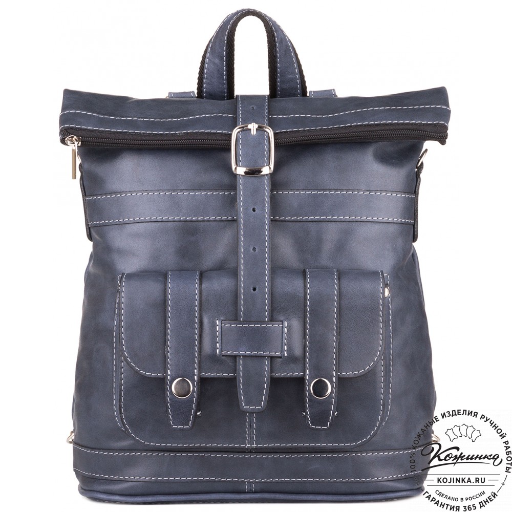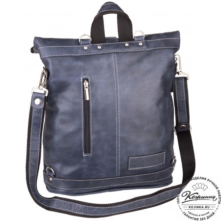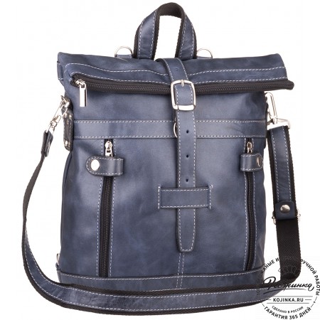 Кожаная сумка-рюкзак "Сан-Тропе" (тёмно-синий) - яркий, стильный и функциональный рюкзак тёмно-синего цвета, выполнен из мягкой кожи европейского качества.