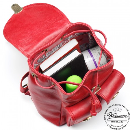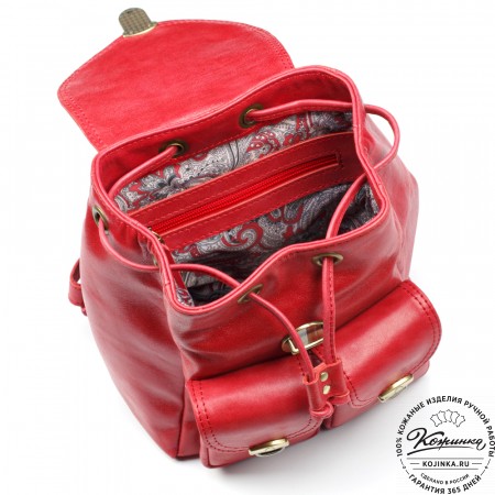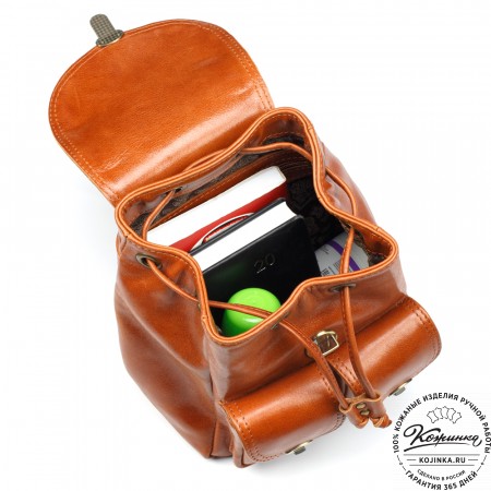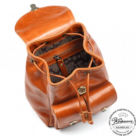 Рюкзак выглядит компактно, но при этом он достаточно вместительный. Внутри одно просторное отделение и карман на молнии для ценных вещей. Подкладка выполнена из прочной ткани с красивым узором.