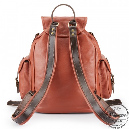 Женский кожаный рюкзак "Гейша" (розовый) - восточные мотивы в мельчайших деталях!