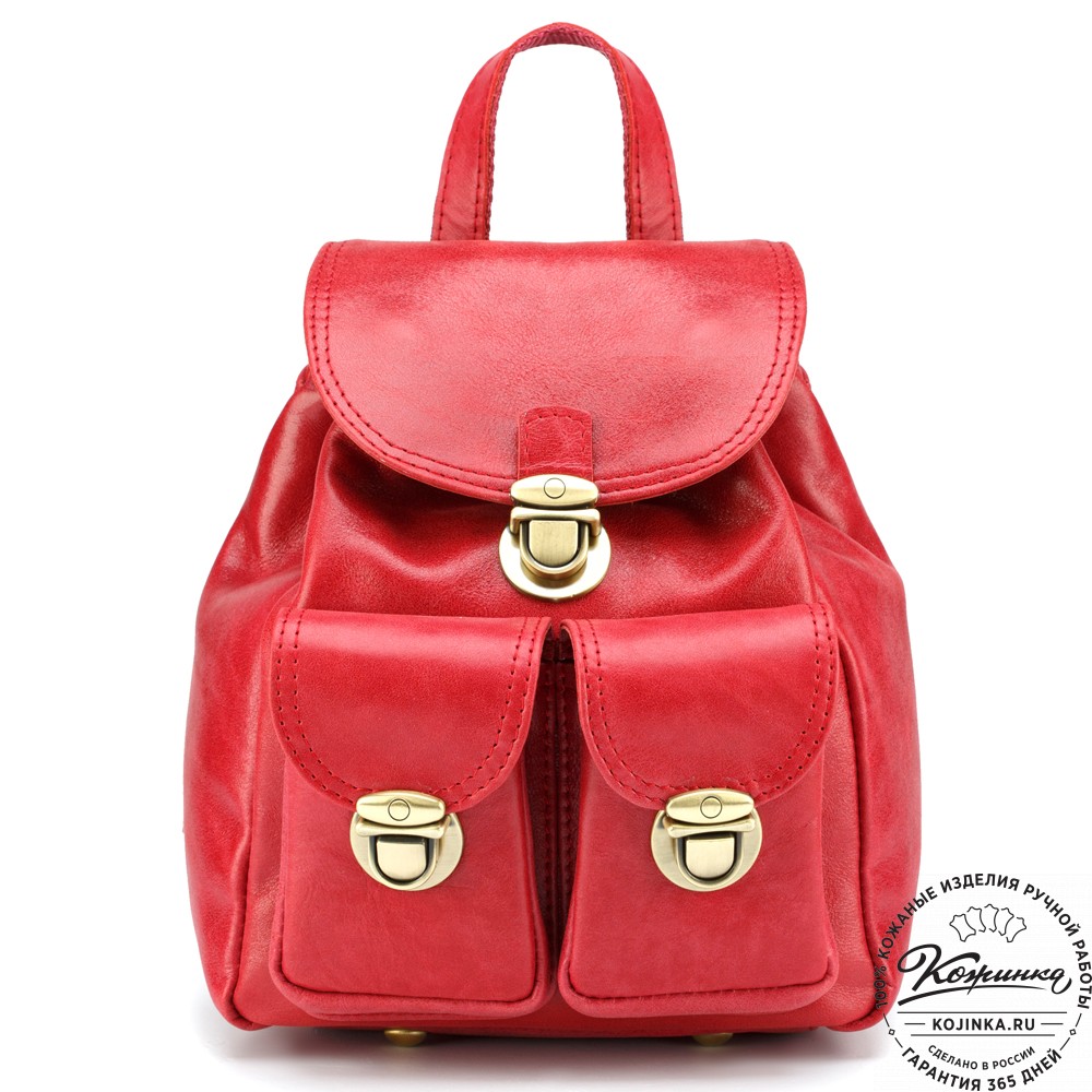 Женский кожаный рюкзак "Нэнси" (красный) - маленький, стильный, женственный рюкзак, созданный для тех, кто любит легкость и красоту.