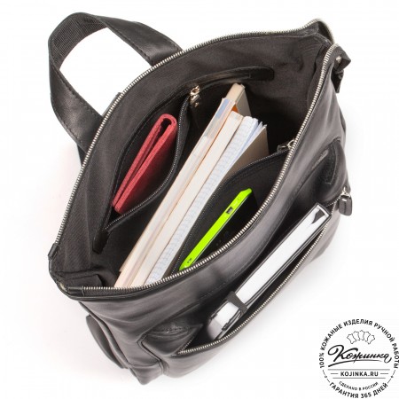 Кожаный рюкзак "Беверли" - современный городской рюкзак из натуральной кожи. Нестандартная форма подчеркивает оригинальность и смотрится очень стильно!
