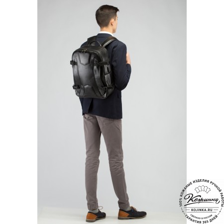 На модели представлен рюкзак "Ланселот" из кожи чёрного цвета.
