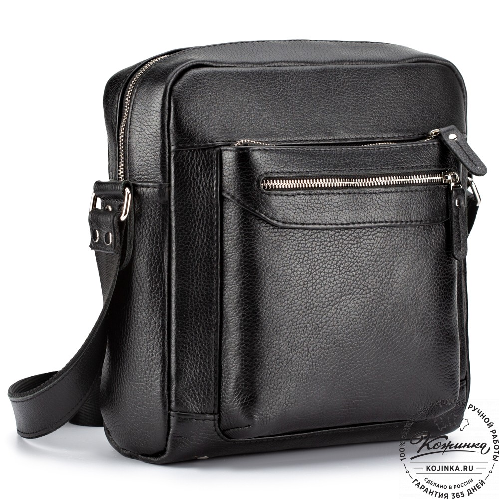Кожаная сумка "Колин" (черная) – практичная мужская сумка средних размеров.