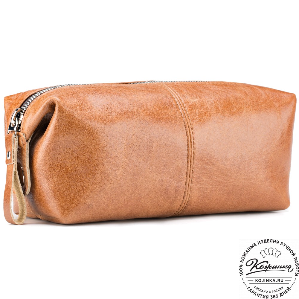 Кожаная косметичка "Бамбина" (рыжая) – вместительная косметичка из мягкой натуральной кожи, которую так приятно держать в руках!