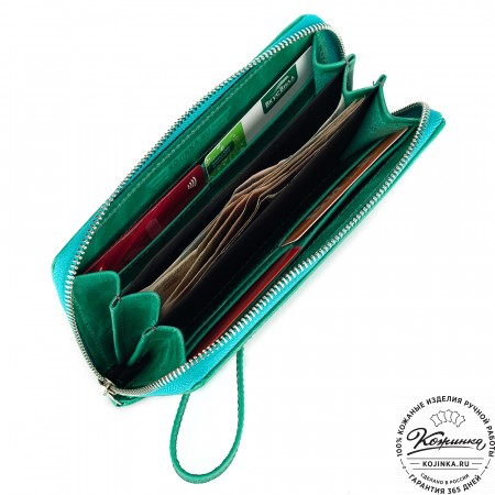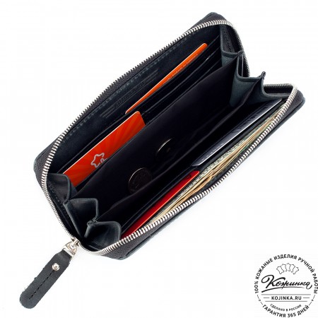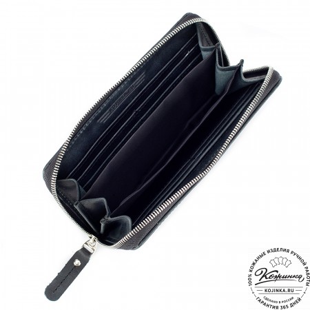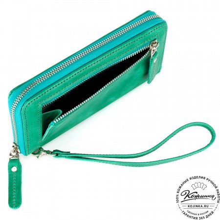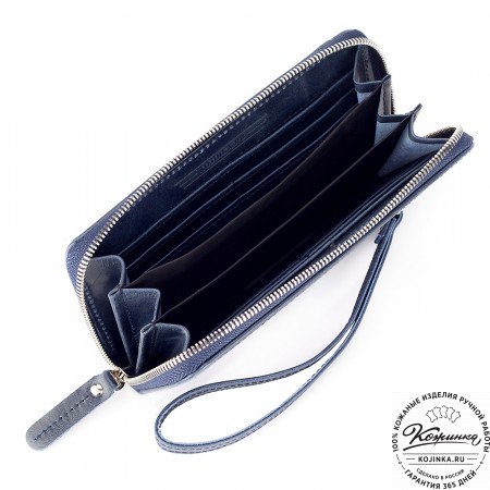 Закрывается на молнию, внутри небольшой открытый кармашек и тканевая подкладка с узором.