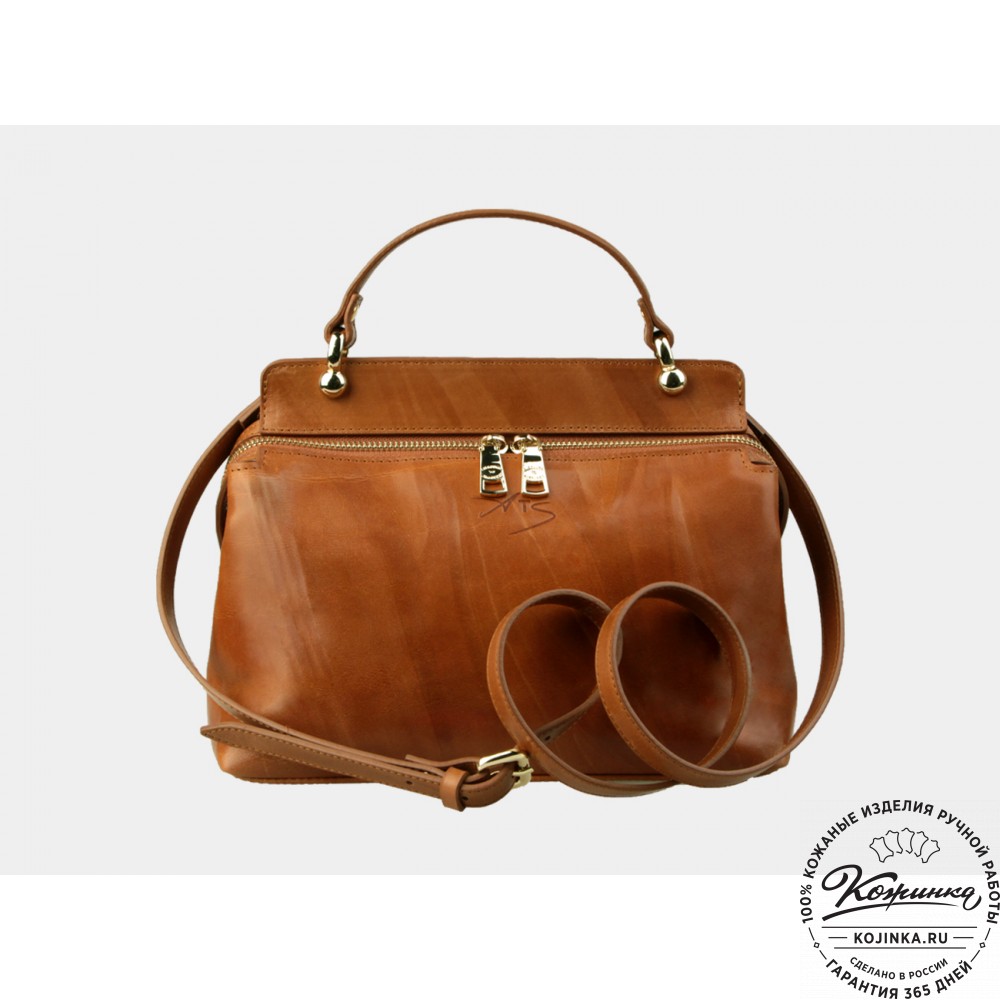 Женская кожаная сумка "Орнелла" (коньяк) – стильная сумочка с интересным дизайном, модный аксессуар на каждый день!
