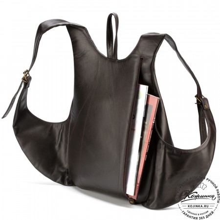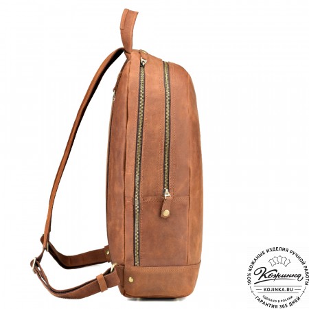 На модели представлен рюкзак "Вена" в цвете рыжий антик.