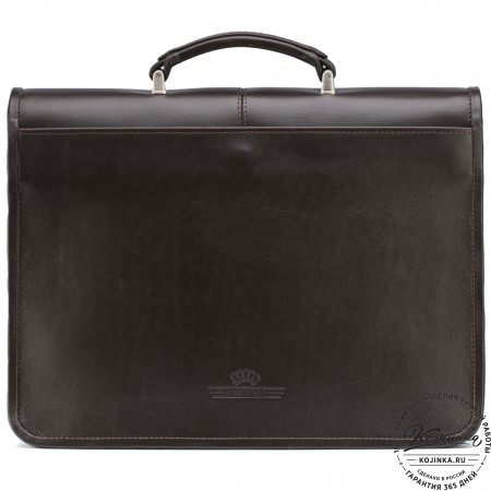 Портфель закрывается клапаном с двумя ременными застежками, под которыми спрятаны удобные портфельные замки.
