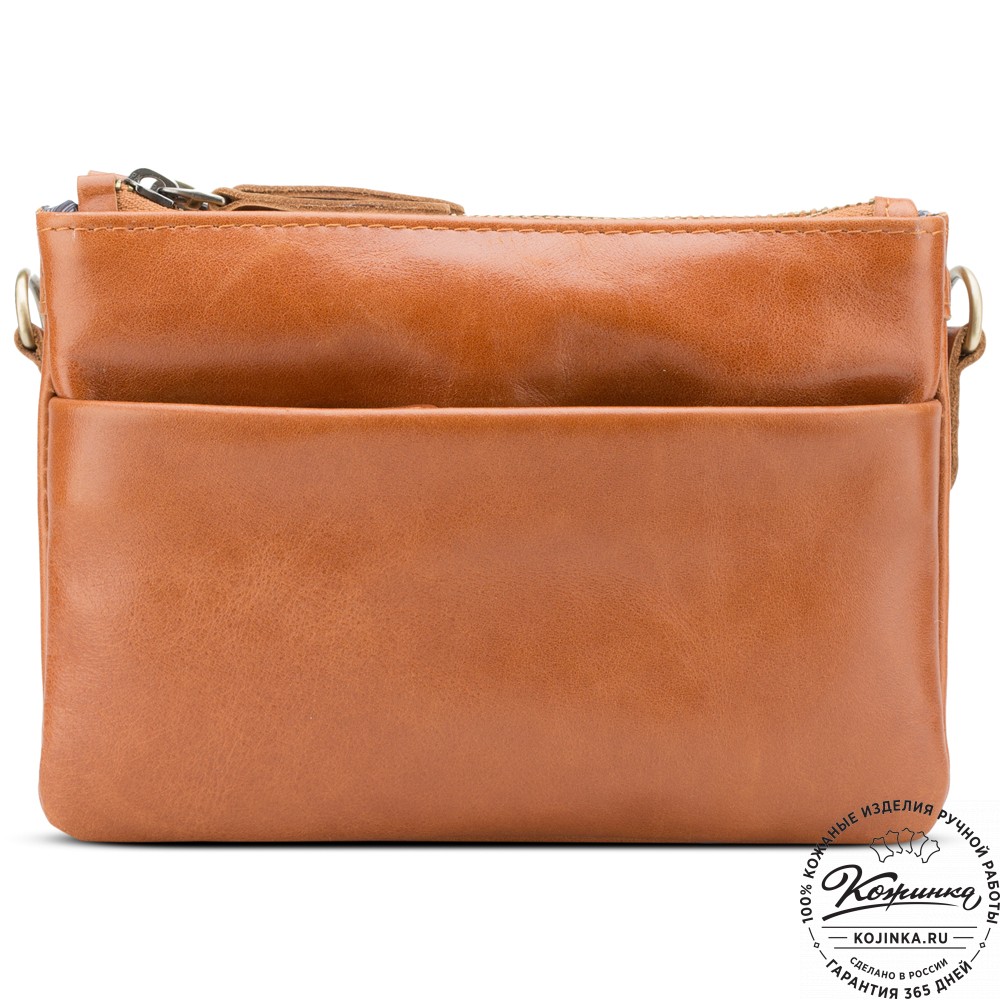 Женская кожаная сумка "Хельга" (рыжая) – маленькая аккуратная сумочка с двумя отделениями.
