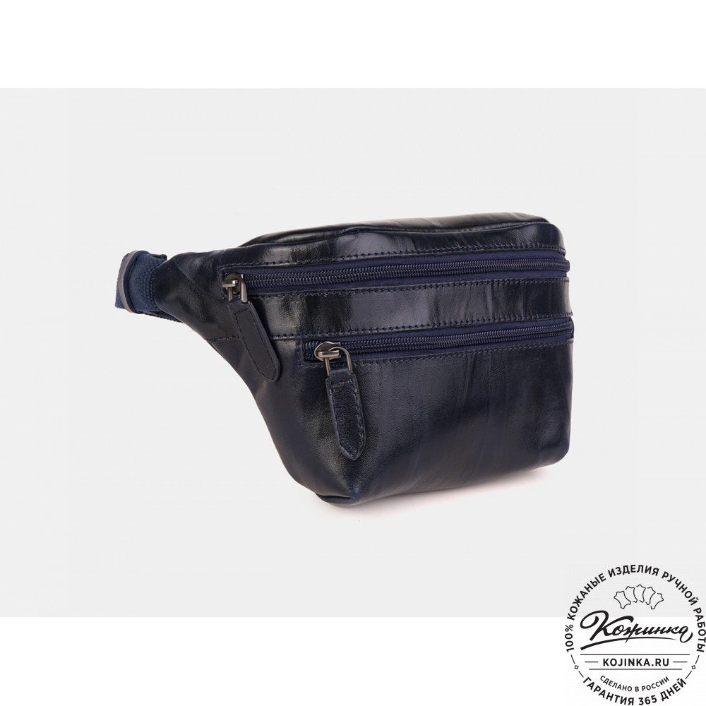Кожаная сумка на пояс "Бритни" (синяя) – аксессуар для тех, кто ведет активный образ жизни!