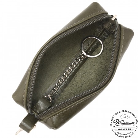 Закрывается ключница на молнию, внутри большое металлическое кольцо для ключей.