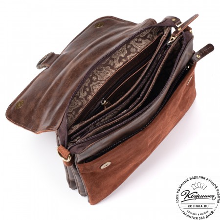 Женская сумка из кожи и замши  "Мишель" (коричневая)