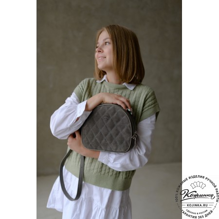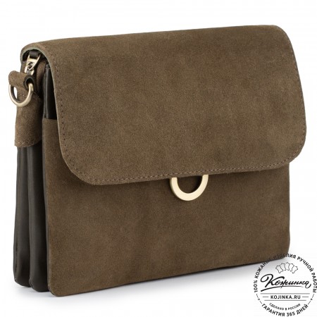 Женская сумка из кожи и замши  "Мишель мини" (хаки)