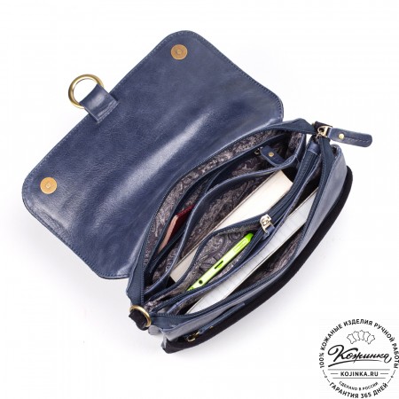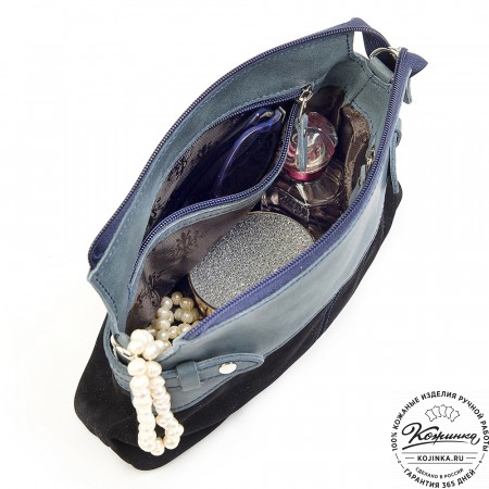 Женская сумка из кожи и замши  "Мишель мини" (синяя)
