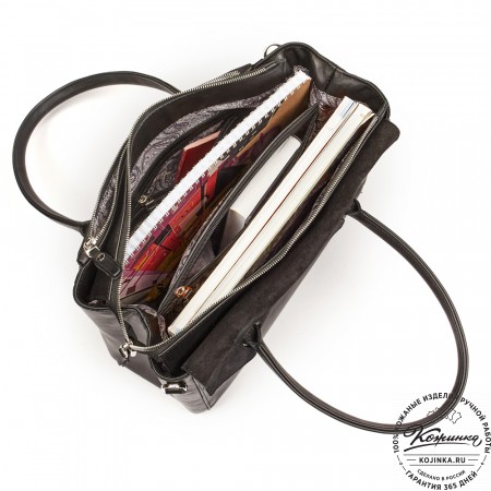 Женская сумка из кожи и замши  "Мишель" (чёрная)