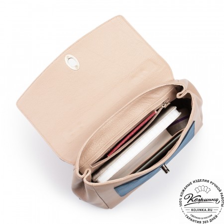 Женская кожаная сумка "Эстель" (пудра-аква)