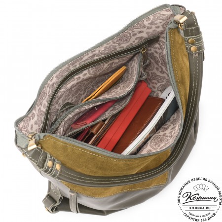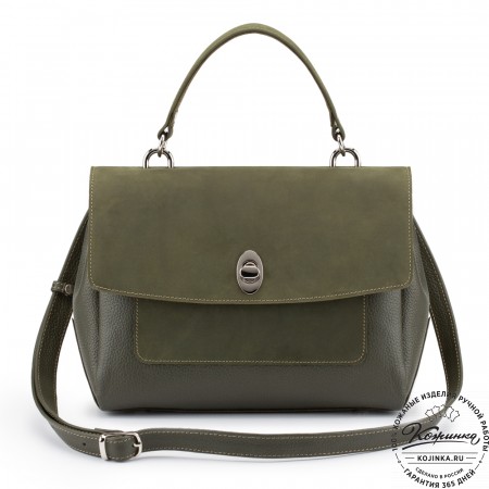 Женская сумка из кожи и замши  "Мишель" (хаки)