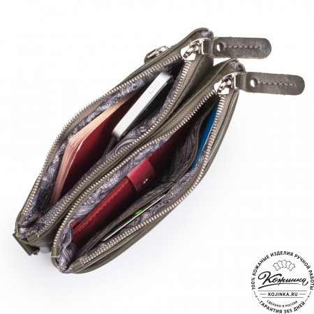 Кожаный клатч "Дарси" (хаки гладкая кожа)