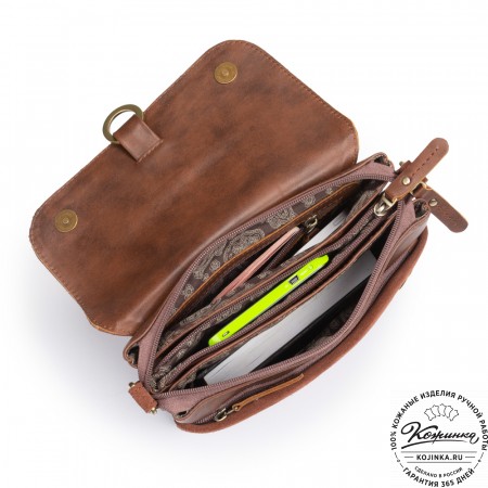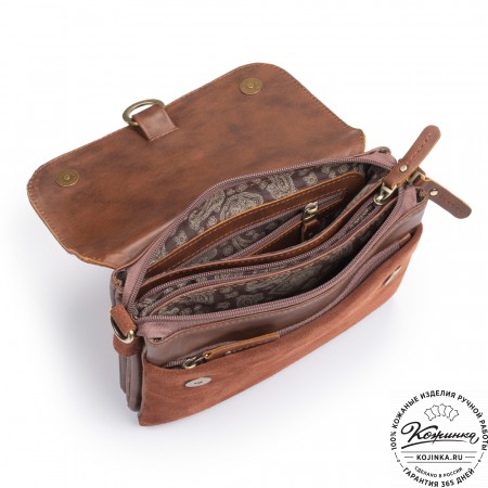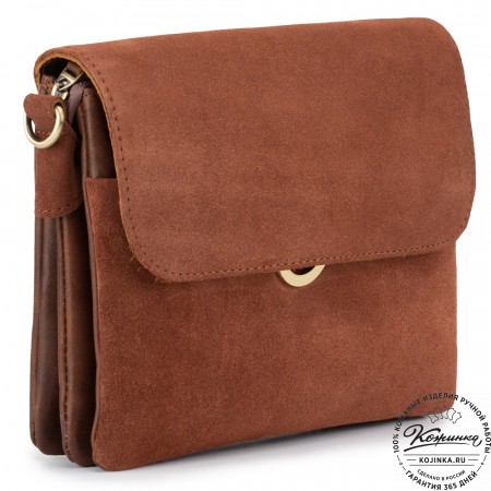 Женская сумка из кожи и замши  "Мишель мини" (коричневая)