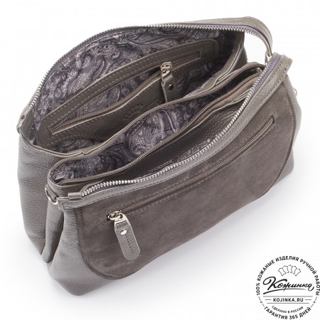 Женская сумка из кожи и замши "Мишель" (серая)