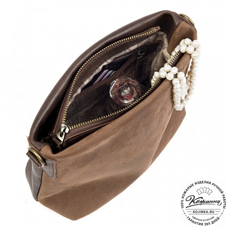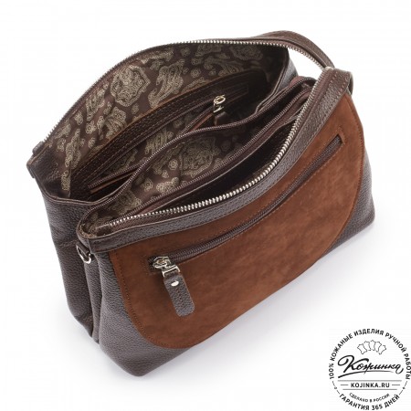 Женская сумка из кожи и замши "Мишель" (коричневая)