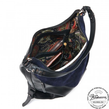 Женская сумка из кожи и замши  "Мишель" (синяя)