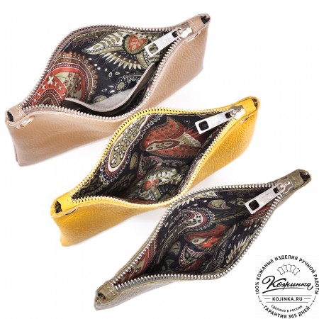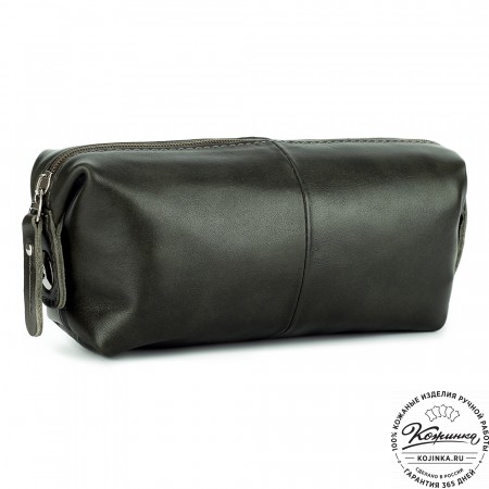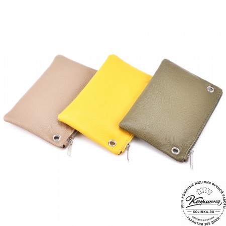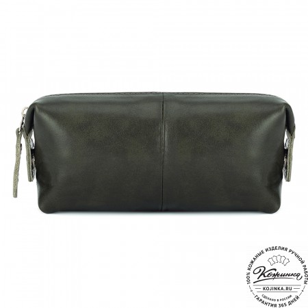 Кожаная косметичка "Бамбина" (хаки гладкая кожа)