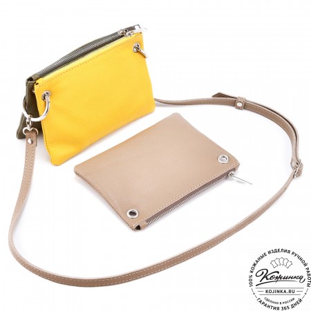 Женская кожаная сумка "Трио" (жёлтый/капучино/олива)