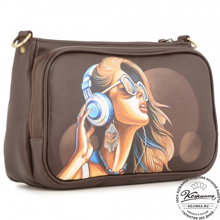 Женская кожаная сумка "Эмма" "Девушка в наушниках" (коричневый)