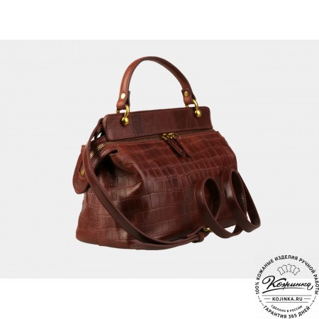 Женская кожаная сумка "Орнелла" (коричневый кроко)